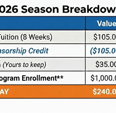The bond guarantees your child gets full teams, real games, and the experience they signed up for. It's the reason we can offer what AAU programs charge $200-300/month for at zero monthly cost to you.